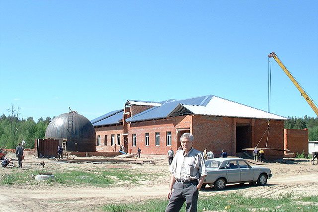 | проф. Ю. А. Гордополов рядом со строящимся Корпусом взрывных работ |